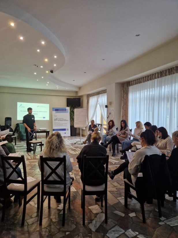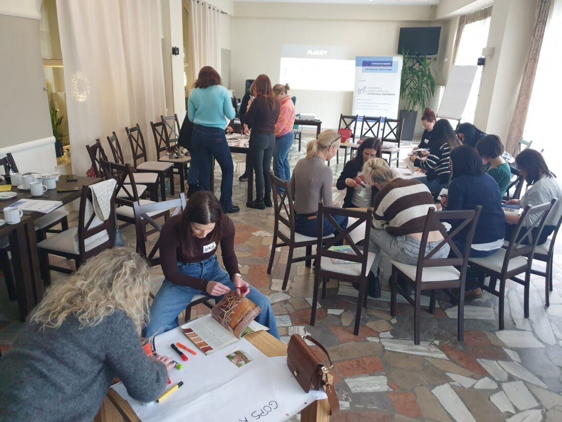 W dniach 4-5 grudnia 2025 r. odbyło się w Sarbinowie spotkanie sieciujące pn. „Moc współpracy – odkrywamy nasz wspólny potencjał” zorganizowane dla przedstawicieli Ośrodków Pomocy Społecznej, Centrum Usług Społecznych i PCPR z powiatu polickiego. Podczas spotkania uczestnicy prezentowali obszary działań organizacji, które reprezentują ale również uczestniczyli w części warsztatowej dotyczącej komunikacji zespołowej i międzyzespołowej.
