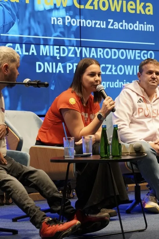 Goście zobaczyli także kilkuminutowy spot „Prawo do bezpieczeństwa” stworzony podczas tegorocznych obchodów przez Młodzieżowy Sejmik Województwa Zachodniopomorskiego oraz prezentację materiału filmowego z tegoroczny obchodów Międzynarodowego Dnia Praw Człowieka na Pomorzu Zachodnim 2025, a także wzięli udzial w panelu dyskusyjnym pn.: „Równe prawa, równe szanse – sport bez barier”. Głos w dyskusji zabrali: redaktor Radia Eska Mateusz Tomaszewicz, Emilia Spunda – amp futbolistka, bramkarka reprezentacji Polski, brązowa medalistka pierwszych Mistrzostw Świata w Kolumbii oraz przedstawiciele Klubu Inwalidów Sportowych „Start” Szczecin: Krzysztof Lechniak i Emilia Trześniowska.
