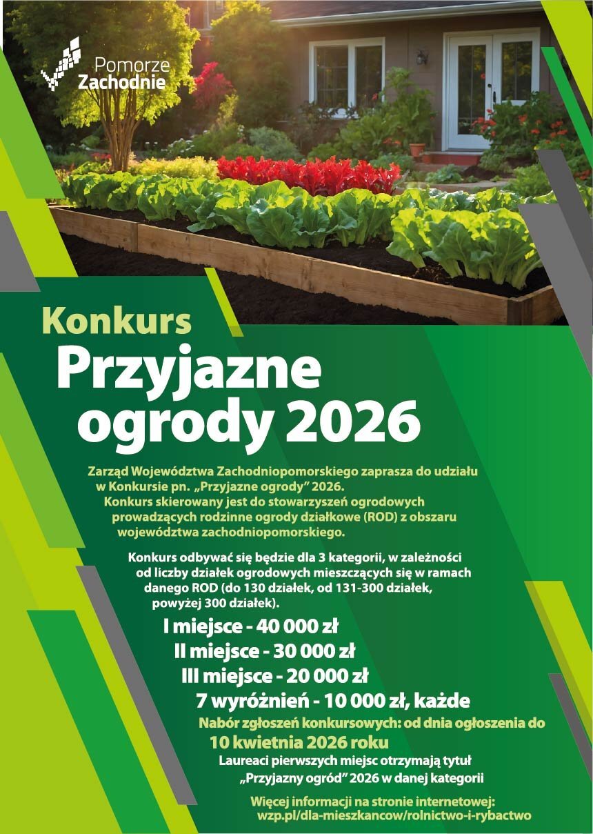 Samorząd Województwa Zachodniopomorskiego ogłasza Konkurs pn. „Przyjazne ogrody” 2026