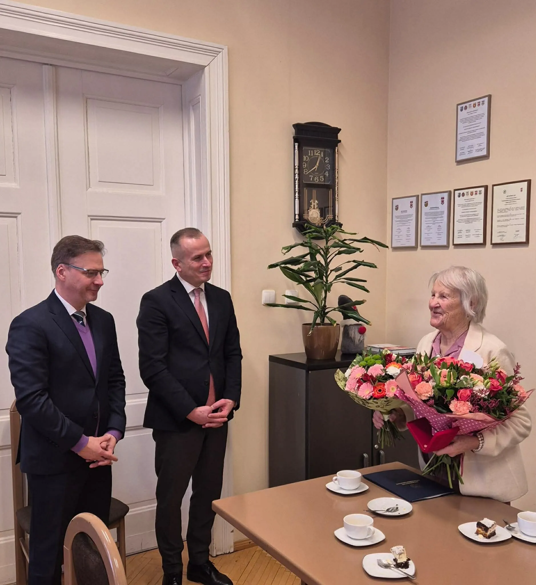 Wanda Więcłąwik (z domu Steć) skończyła 100 lat. Z tej okazji z mieszkanką Myśliborza spotkał się m.in. członek Zarządu Województwa Marcin Łapeciński. Jubilatka została odznaczona Złotą Odznaką Honorową Gryfa Zachodniopomorskiego. Nie zabrakło życzeń, kwiatów i tortu.