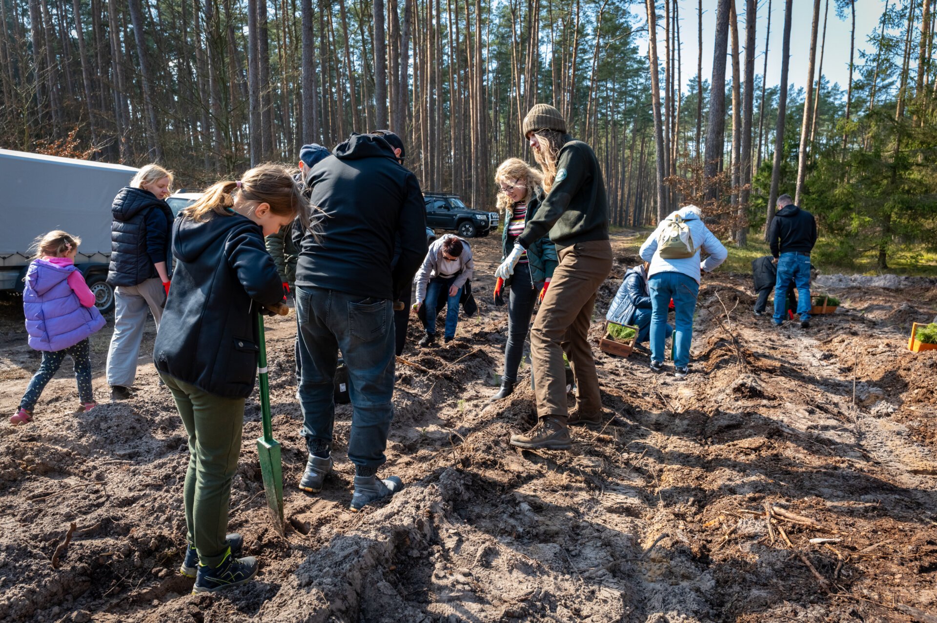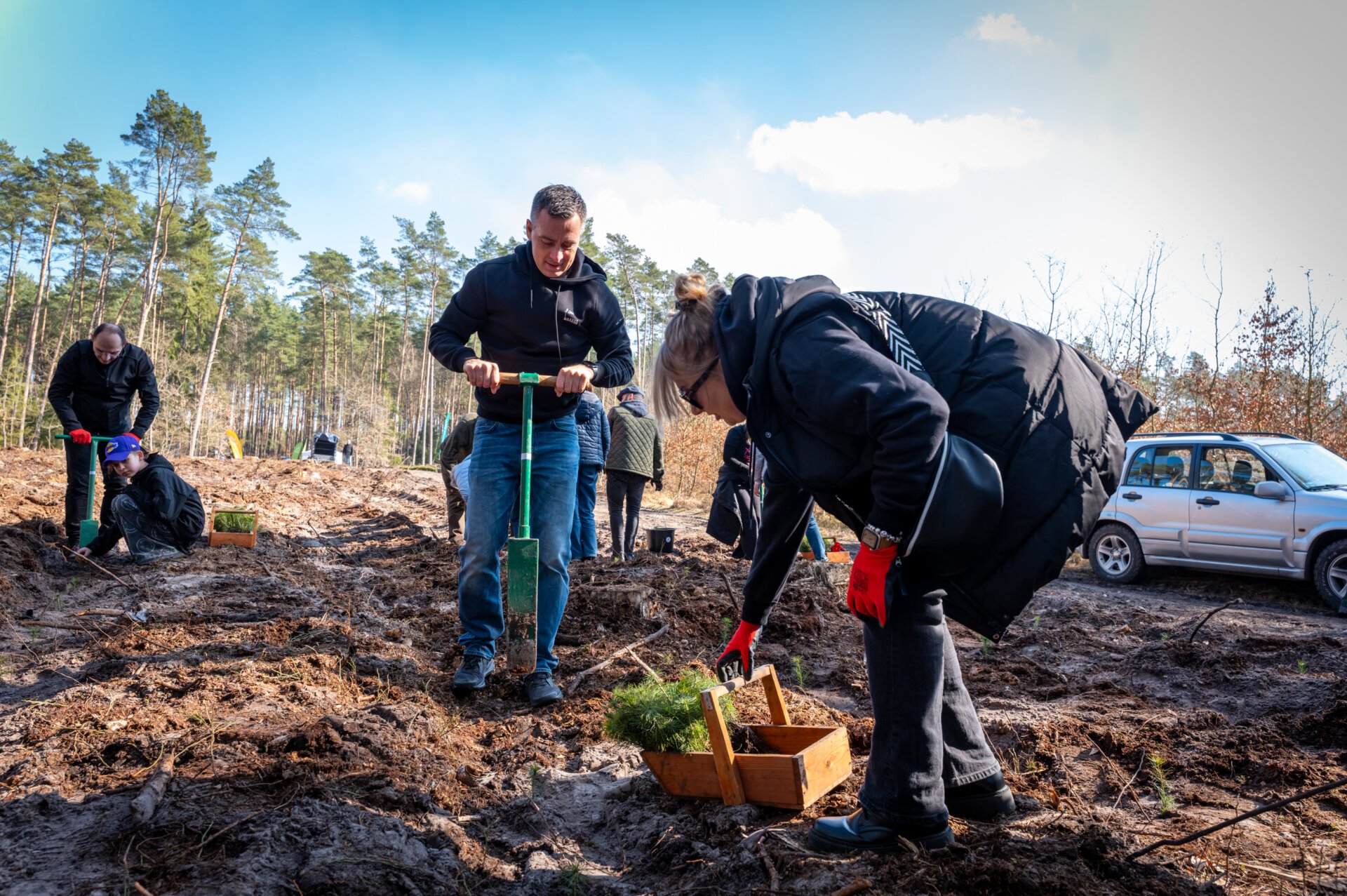 „Rodzinne sadzenie drzew” odbyło się w sobotę, 21 marca 2026 r. na terenie Nadleśnictwa Trzebież. Do akcji mógł przyłączyć się każdy, kto wcześniej zarejestrował się poprzez formularz zgłoszeniowy.