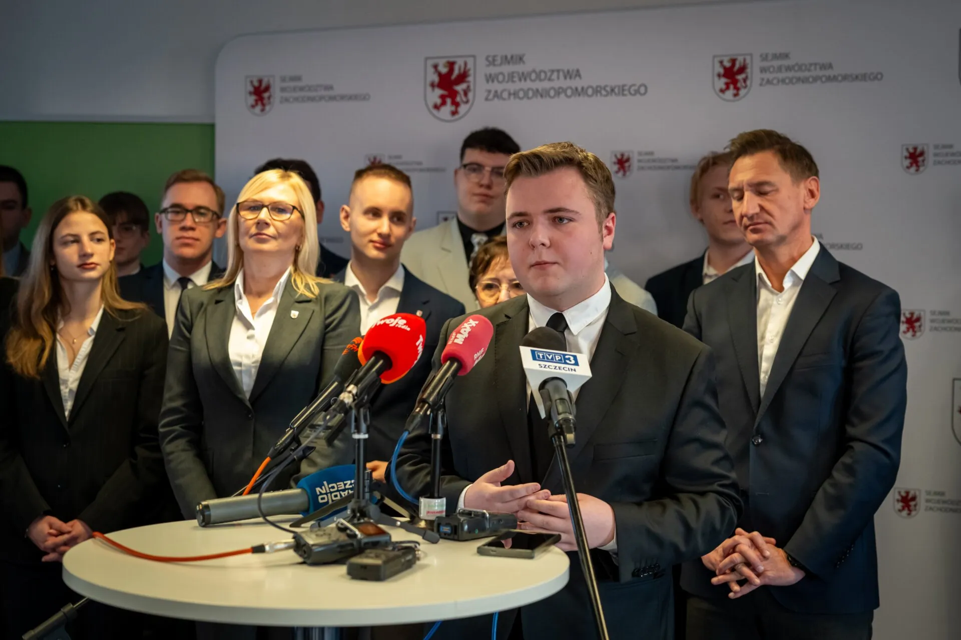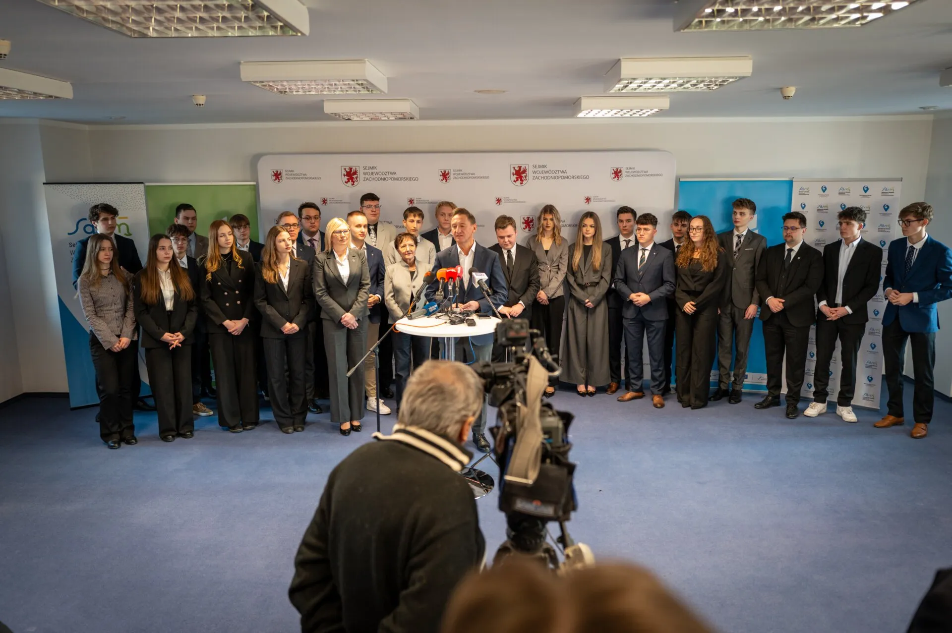 Konferencja prasowa z młodzieżą, na pierwszym planie Olgierd Geblewicz