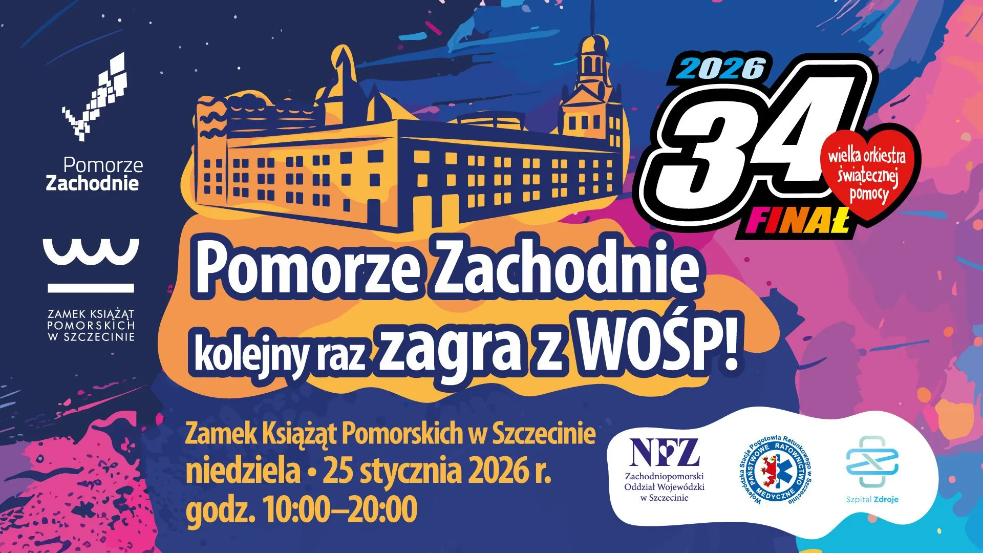 Pomorze Zachodnie kolejny rok z rzędu zagra z Wielką Orkiestrą Świątecznej Pomocy. Na 34. finał Urząd Marszałkowski i Zamek Książąt Pomorskich w Szczecinie przygotowali wiele atrakcji. Koncerty, zwiedzenie z przewodnikiem, badania, pokazy czy tradycyjne wieczorne Światełko do Nieba – to tylko niektóre z nich. By skorzystać z przygotowanych atrakcji, wystarczy w niedzielę, 25 stycznia 2026 roku przyjść na Zamek, przy okazji wrzucić dowolny datek na szlachetny cel.