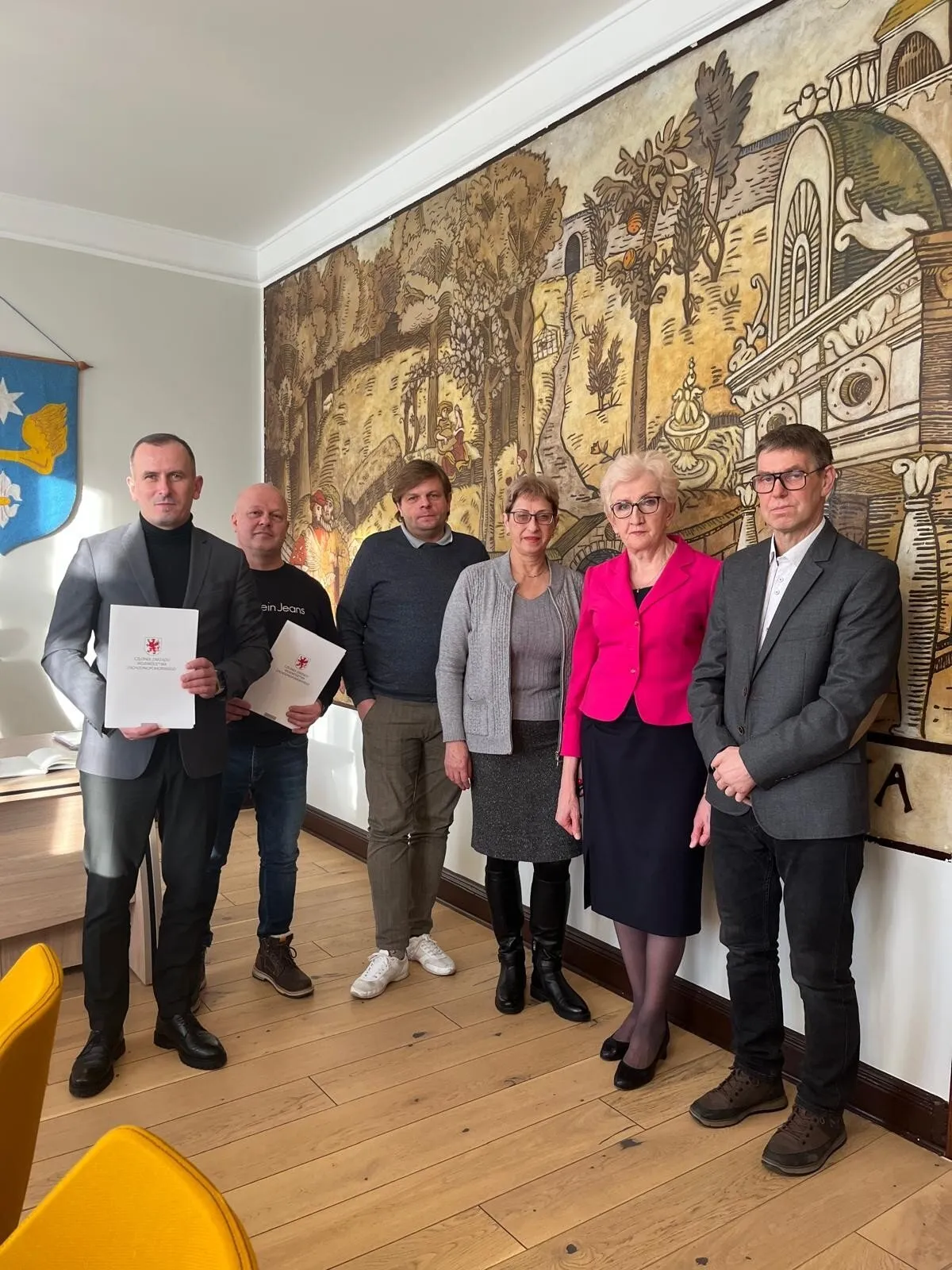 Wspólne zdjęcie w urzędzie miejskim w Suchaniu po podpisaniu umowy