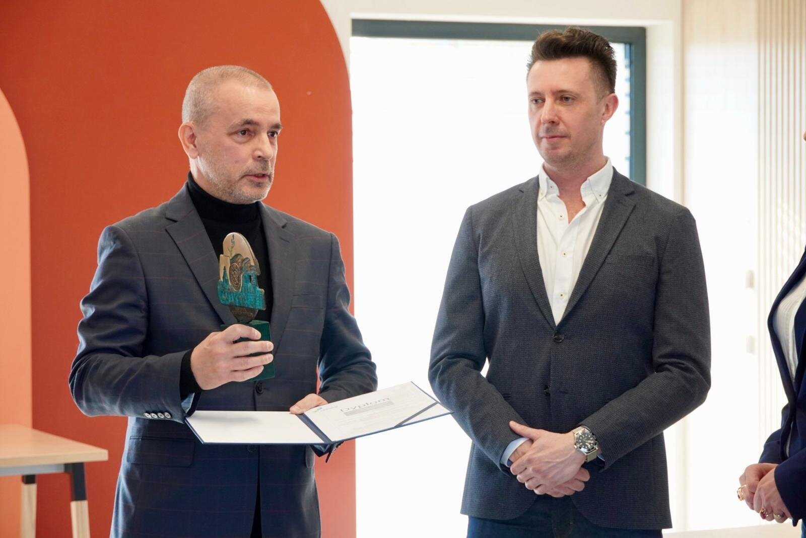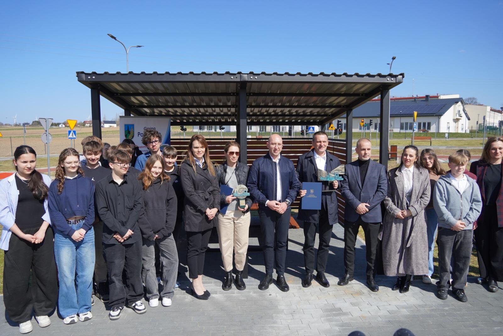 Wyróżnienie przyznane w kategorii przestrzeń publiczna odbierali Wójt Gminy Postomino Janusz Bojkowski i projektant z Biura Projektowego i Inżynieryjnego ADNIL Linda Weber.